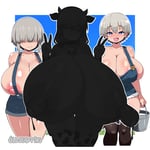 Farmer Hana and Farmer Yanagi are tending to their prize dairy cow, Mama Tsuki